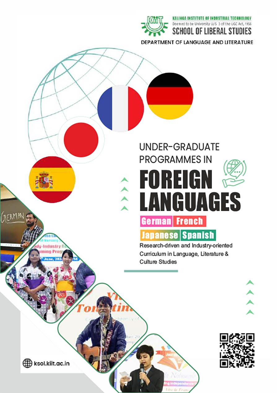 Unlock Global Career Opportunities with KIIT Department of Language & Literature (KDLL)! At KDLL, we offer cutting-edge, value-driven education in globally recognized languages, equipping you with essential language proficiency to thrive in today’s competitive world. Our programs are tailored to meet the career demands in Multinational Corporations (MNCs), UN Missions, Embassies, NGOs, BPOs, and innovative start-ups. Mastering these languages also opens doors to prestigious Universities abroad for higher education. The industry-oriented curriculum on foreign language, both for Degree and Certificate courses, taught by experts from reputed Universities cater to the development of globally recognized skill-set and competitive edge among students for careers worldwide.